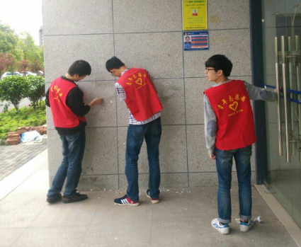 2016年4月16日下午2:00,为了给老师们营造一个整洁的工作环境,给同学们提供一个良好的学习环境。beats365官方网站青年志愿者服务中心和院文明先锋队一起组织了30余名志愿者对建规楼进行了打扫,重点清除了墙上的小广告和玻璃上的污渍。经过近两个小时的打扫,墙上的小广告和玻璃上的污渍已基本清理干净。