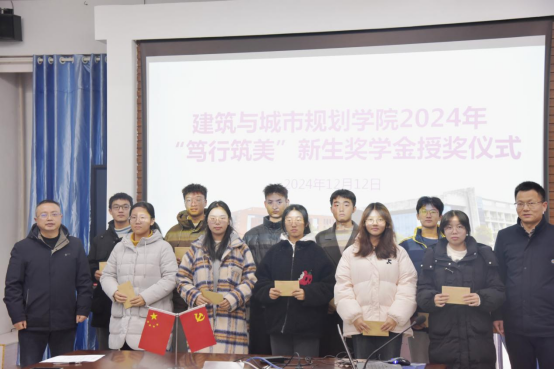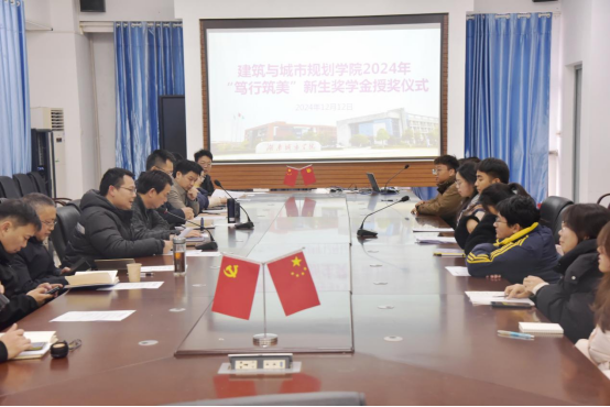 本网讯(通讯员 杨思泽 张俊)为激励新生们在建筑规划领域不断追求卓越,弘扬笃行精神,筑造美好未来。2024年12月12日下午,建筑与城市规划公司2024学年“笃行筑美”新生奖学金授奖仪式在建规楼402会议室隆重举行。公司党委书记彭建国,经理宁启蒙,党委副书记曾强,副经理易纯、王晓华,各系室主任,全体辅导员,10名新生奖学金获得者和2024级各班主要员工干部参加会议。会议由曾强主持。