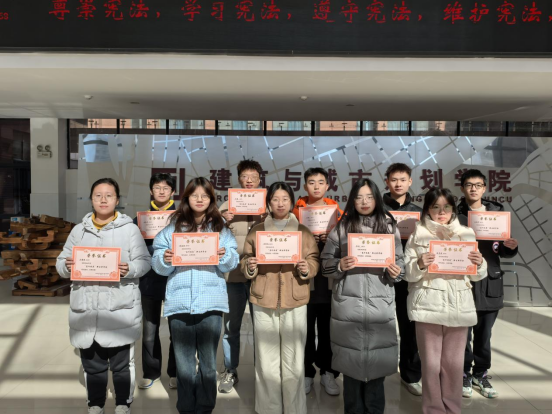 宁启蒙经理和王晓华副经理为“笃行筑美”新生奖学金的同学们颁奖并合影留念。