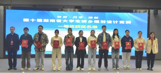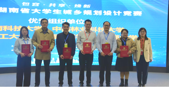 会上,雷存喜对各参赛高校和获奖选手表示衷心感谢和诚挚祝贺,并寄语同学们发挥专业所长,自觉助推和服务国家新型城镇化和乡村振兴战略。省教育厅高教处周军副处长在讲话中指出,本次竞赛是湖南省城乡规划教育成果的一次集中展示,促进了各高校之间的交流与合作,推动了城乡规划公司产品质量的提升。张成智教授详细解读了竞赛题目,并对获奖作品表示肯定,鼓励选手们再接再厉,继续保持对专业的热爱和追求。随后,与会领导为获奖单位和获奖者颁奖。