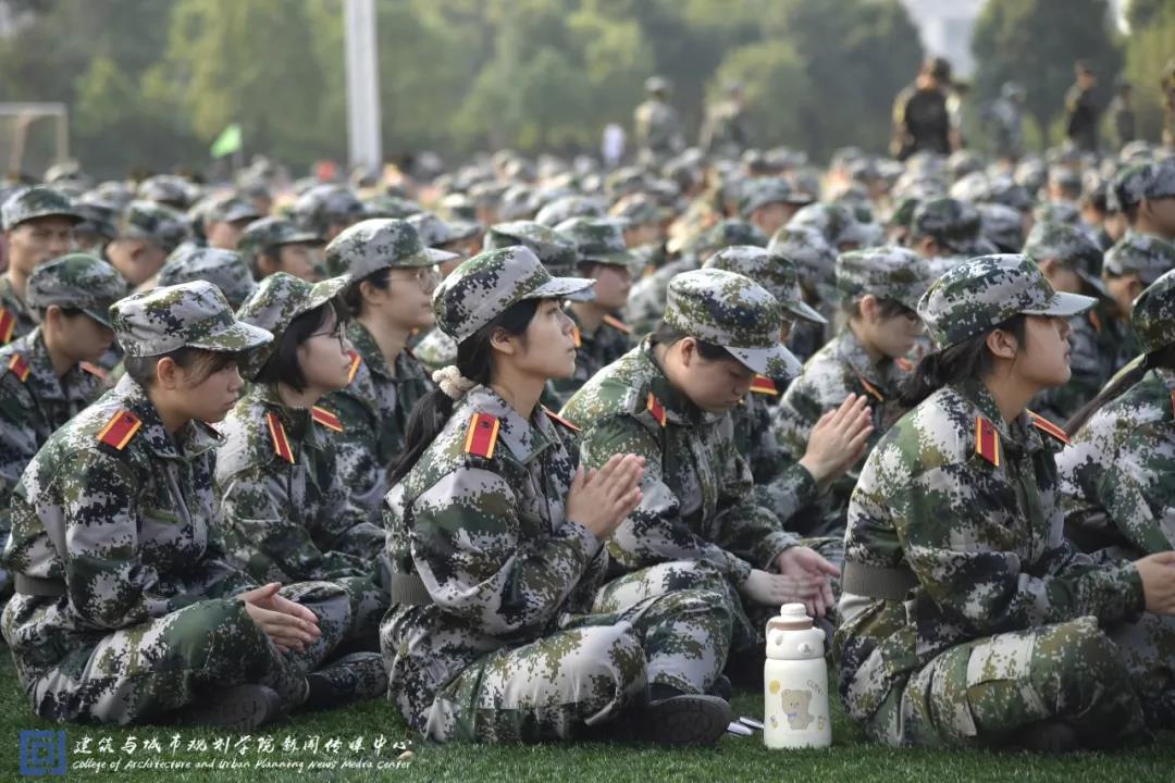 新橙们穿着军装,意气风发地步入会场