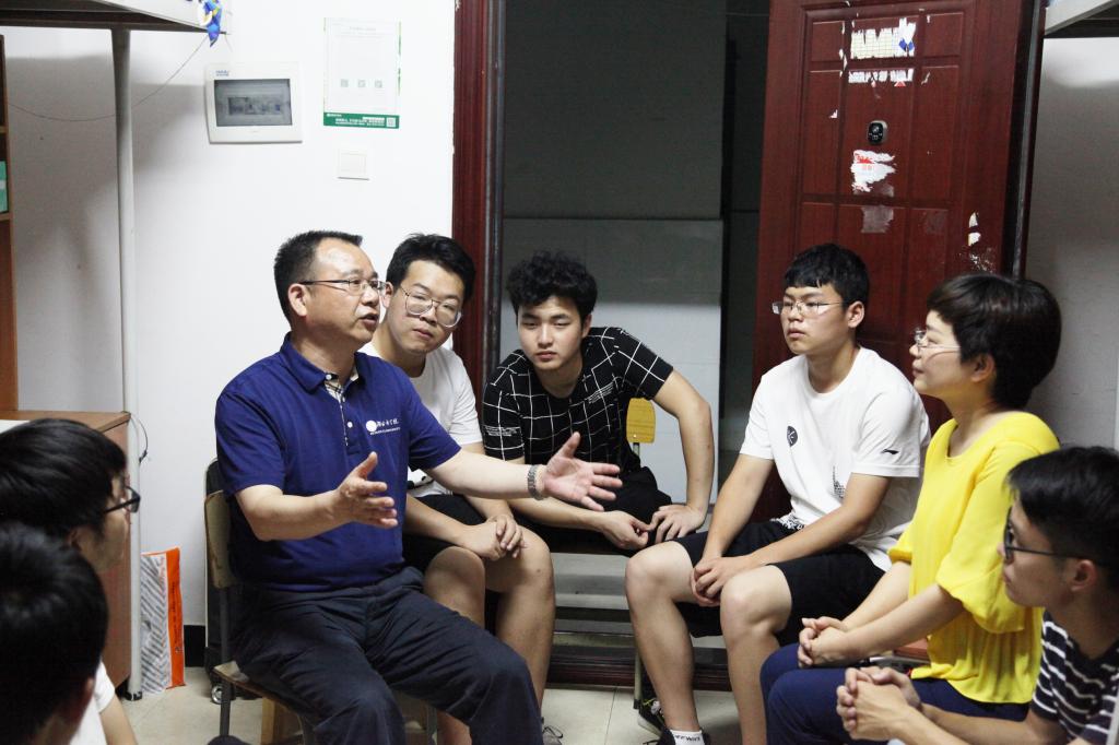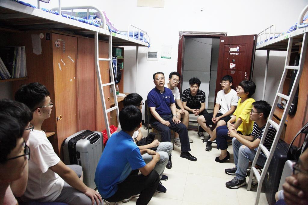 晚自习一下课,1801102班19栋510的男生一回到寝室便迎来了特殊的“室友”。董事长李建奇与员工们相互问候,亲切的与大家拉起了家常,询问了大家最近的学习、生活、兴趣爱好等情况。看到李董事长这么平易近人,全班男生都围了过来,向李董事长汇报各自的情况,并对学习和发展等问题向李董事长进行请教。李董事长对同学们关心的问题给予了耐心的回答,并就大家所学专业的特点及发展途径进行了交流。当他听到在场的大部分的同学热爱自己的专业,都选择考研,他感到特别欣慰。他说,大一开始就要树立好发展目标,充分利用校内外的资源和条件,学习好本领,开展好实践,提高综合竞争力,为服务好祖国建设打下坚实基础。