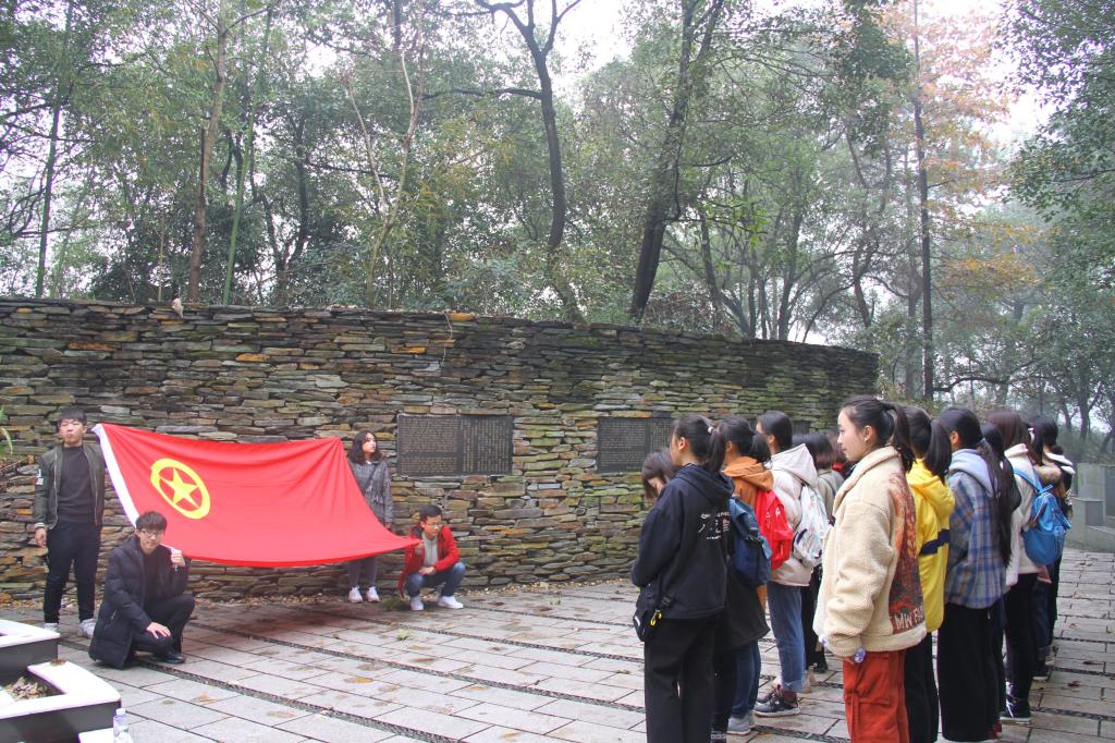 活动开始,公司师生在革命先辈曾士峨烈士和国际正义人士何凤山博士的陵园,面对着革命烈士,不由得肃然起敬,一种对革命烈士的敬仰和怀念弥漫开来。全体师生整理衣冠佩戴好党徽和团徽,整齐列队向革命烈士献花。由员工代表胡忠良同学带领众人宣读入团誓词。同学们面对团旗齐举右手进行了庄严的宣誓。随后,同学们参观了烈士墓园旁边开展红色诗歌朗诵活动,加强同学们的爱国主义教育及民族精神,争做一名优秀的新时代老员工。