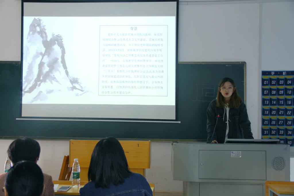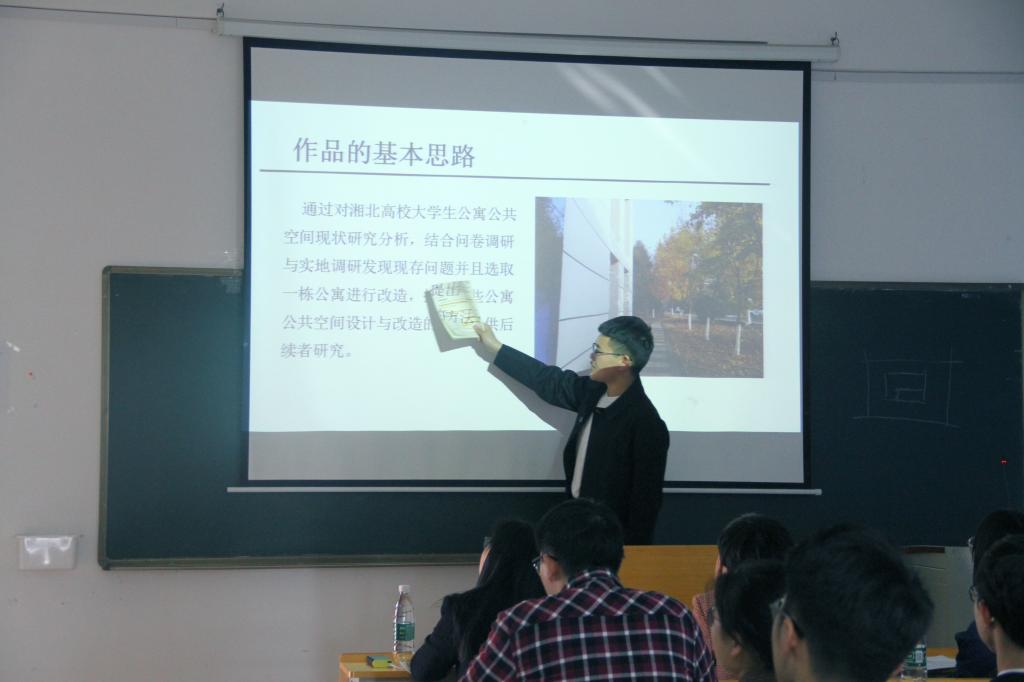 本次答辩会的项目内容分别是:1601403班的湘北高校员工公寓公共空间改造;1701502班的宇宙起源;1601404班的激活城市空间—针对弱势群体的适用性优化;1701402班关于语言暴力的调研;1701101班螺旋伸缩作圆器;陈钧宇团队的“雪炭行动之胡寨艺术院墙共建营造工作坊”三下乡社会实践调研公益活动;刘吉团队的赴安化县新农村建设规划调研团。各组参赛代表分别对本组课外学术科技作品进行了详细阐述,向我们展示了他们的团队精神和刻苦钻研、勇于创新的品质。
