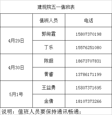 2018年beats365官方网站五一劳动节值班安排表