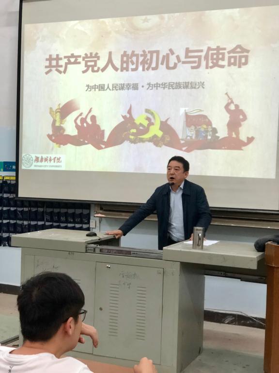 2018年4月25日下午,为进一步落实全国及全省高校思想政治工作会议精神,按照公司党委统一部署和安排,公司党委书记项龙武在一教学楼107以“共产党人的初心和使命”为主题为公司大一学子讲了一堂生动的形势与政策课。