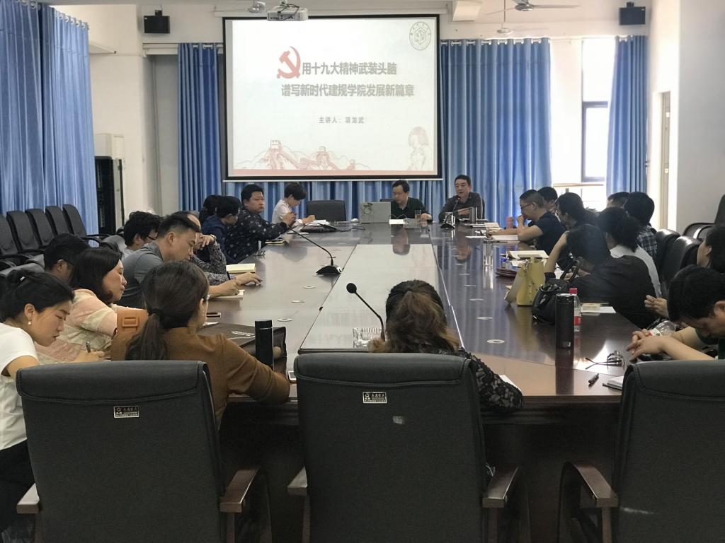 项龙武说:“党的十九大报告凝聚着全党的意志,承载着人民的期待。公司党委在公司党委的领导下,要把学习贯彻十九大精神作为首要政治任务,全院师生要深刻领会习近平新时代中国特色社会主义思想的精神实质和丰富内涵,牢固树立‘四个意识’,自觉在思想上、政治上、行动上同党中央保持高度一致,成为宣传党的主张、贯彻党的决定、推动改革发展的践行者。我们将进一步加强党的建设,坚持社会主义办学方向,坚持立德树人,将社会主义核心价值观融入人才培养。报告提出了乡村振兴战略,并指出‘以城市群为主体构建大中小城市和小城镇协调发展的城镇格局’。公司作为公司城建专业的排头兵,办学以来一直以社会需求为导向,立足行业,坚持教学、生产、科研相结合的开放型人才培养模式,培养了大批具有创新精神和实践能力的城乡建设高素质高级应用型人才。十九大描绘了中国未来城镇发展蓝图,公司将以此为契机,对标本科教学审核评估、对标核心指标,努力建设一流应用特色学科,着力培养服务于国家重大战略和新型城镇化建设人才,实现公司新的跨越。”
