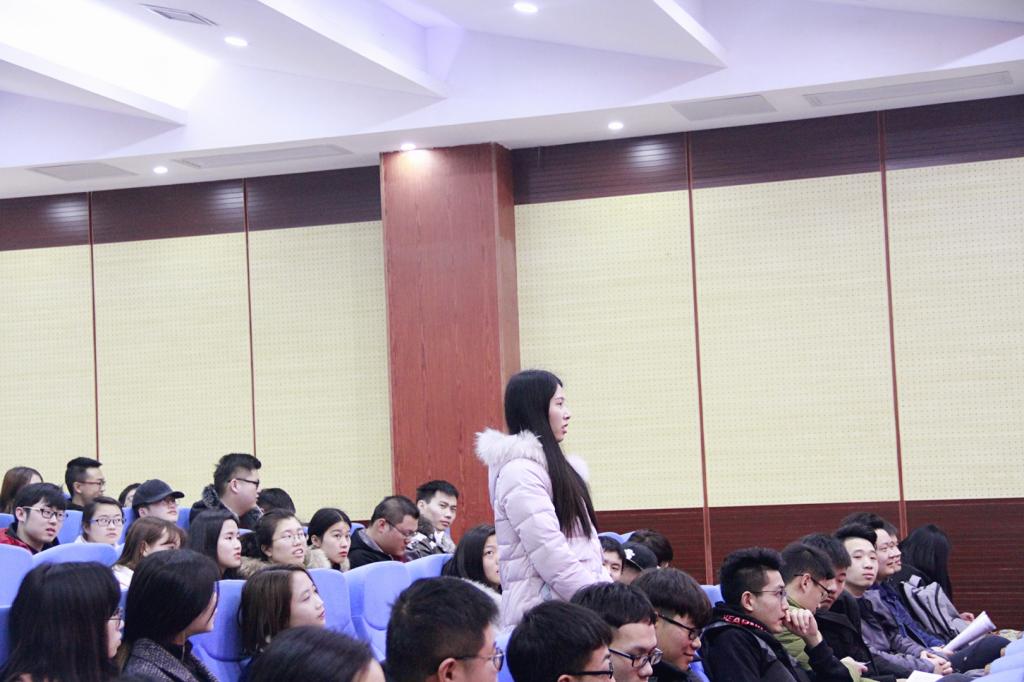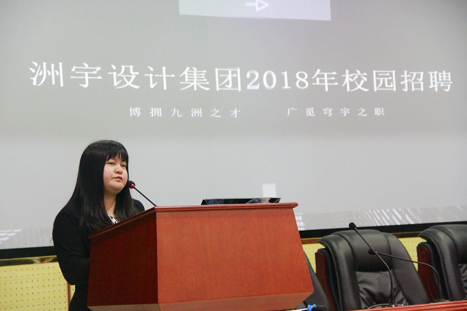 本次活动分两场进行。第一场是洲宇设计集团柴玲员工的演讲。她介绍了入职以来的自己奋斗打拼的情况,她强调在职场中一定要能吃苦、要敬业、要精益求精,这样才能很快站稳脚跟,取得更好的发展平台。柴玲学姐入职三年以后便开始了她的创业之路,她和她的合伙人一起策划方案、开拓市场、商谈业务,经过近10年的努力,洲宇设计集团员工现已达700人之多。柴玲学姐接着介绍了公司的发展目标、人才引进和培养机制以及晋升通道,之后回答了在场员工提出的问题。