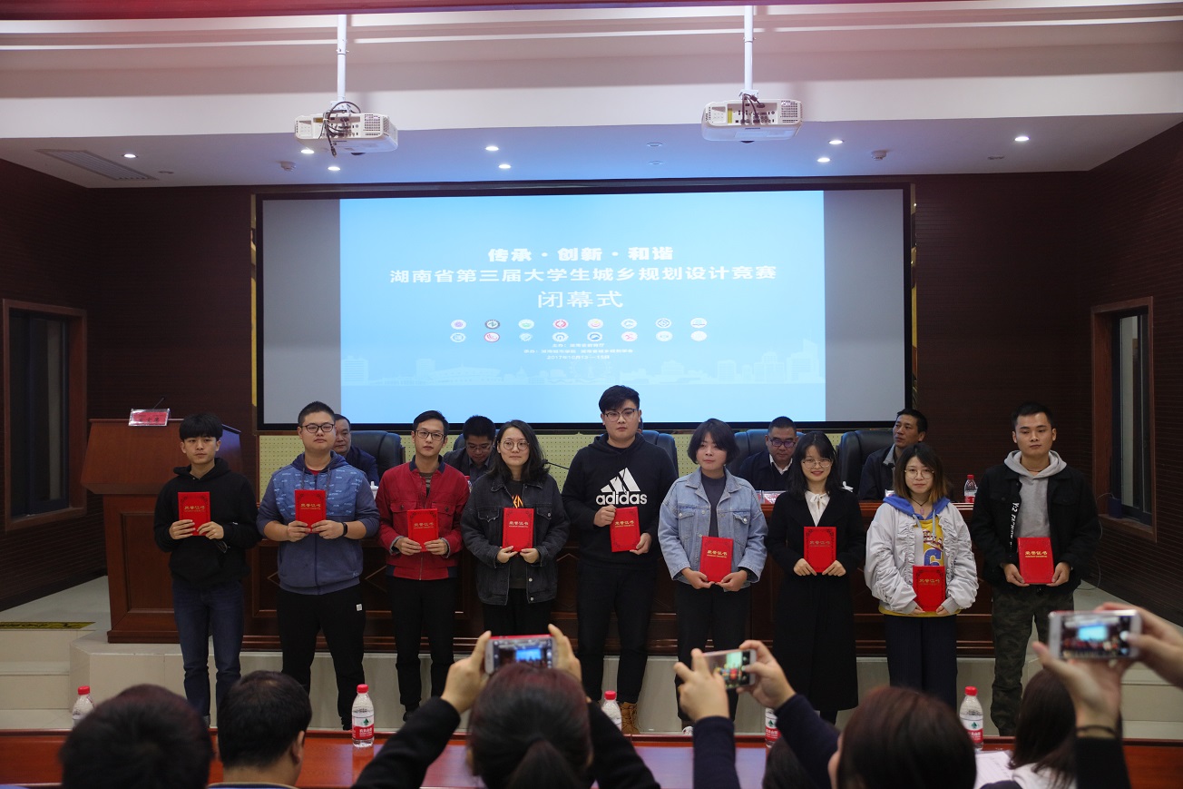 15日上午9:00,比赛举行了闭幕式。教育厅高教处处长曾力勤,副董事长郑卫民、雷存喜,湖南城乡规划学会副理事长、长沙市规划设计院副经理谭春华,省教育厅高教处副处长张平出席会议并为获奖选手颁奖。