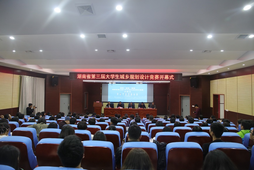 14日上午8时,比赛开幕式在建筑规划楼一楼报告厅举行。省教育厅副厅长葛建中,校领导罗成翼、李建奇、汤放华、郑卫民、雷存喜,中国城市规划学会理事、全国高校城乡规划专业指导委员会委员徐建刚,省教育厅高教处副处长张平,湖南省城乡规划学会秘书长、湖南省建筑设计院总规划师李彩林,湖南省城乡规划学会副秘书长曹燕,以及各参赛高校代表队参加会议。开幕式由李建奇主持