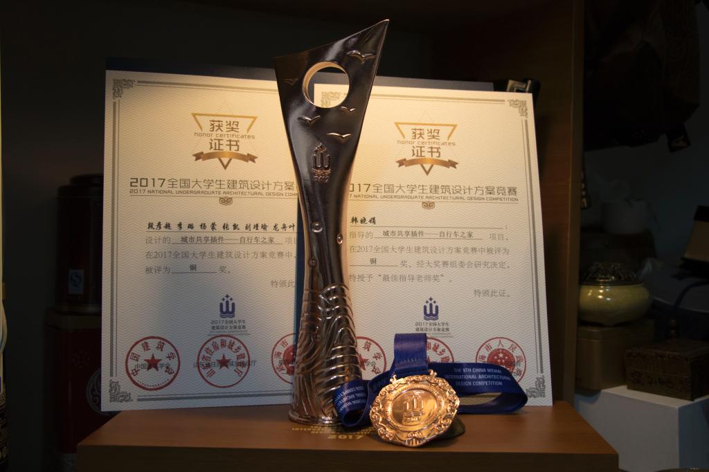 日前,2017全国老员工建筑设计方案竞赛成绩揭晓,beats365官方网站师生在本次建筑设计竞赛中取得佳绩。建筑学专业四年级员工段彦超、李璐、杨蒙、张凯、刘瑾瑜、龙舟叶提交的设计作品《城市共享插件——自行车之家》获得铜奖,韩晓娟老师获得最佳指导老师奖,在同省参赛高校中名列前茅。获奖作品在第九届中国威海国际人居节上展出。