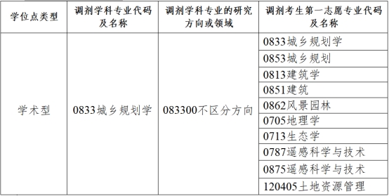 2.城乡规划学接收跨学科门类调剂,具体复试调剂考生第一志愿专业范围如下:
