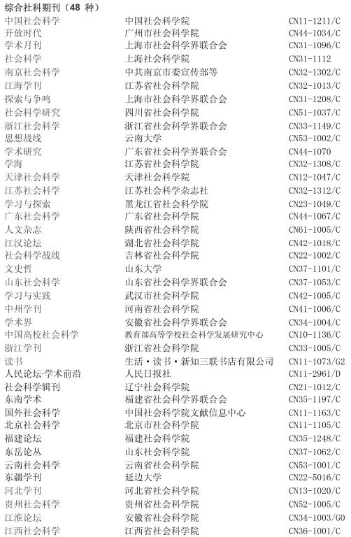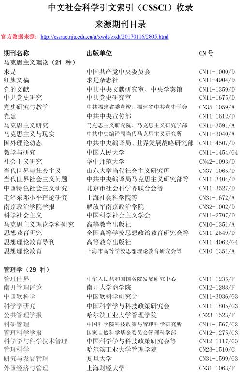 2017-2018CSSCI来源期刊一览