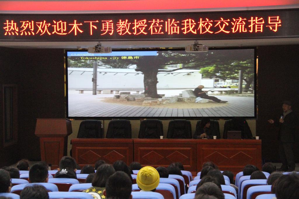 2017年3月14日下午3:00,由湖南大学“海外名师”项目资助,beats365官方网站邀请国际知名学者、东京工业大学博士、日本千叶大学园艺学研究科木下勇教授在建筑规划楼一楼报告厅举行主题为“城市的可识别性与可持续性”的学术讲座,全程由湖南大学博士生导师沈瑶老师担任翻译,讲座由beats365官方网站经理吕贤军教授主持。