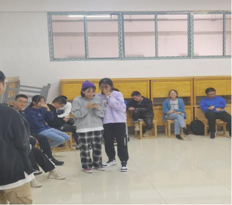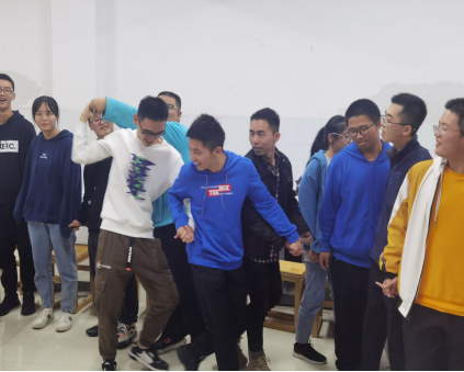 首先,各位朋辈辅导员让大家进行了幽默的自我介绍,消除了新生之间的陌生感。随后朋辈辅导员带领大家开启了游戏环节。第一个游戏为“爬鸭子”,此起彼伏的“嘎嘎”声使同学们忍俊不禁,营造了轻松愉快的团体氛围。紧接着,“答非所问”的惩罚环节,由受罚同学给大家带来了精彩的才艺表演,使同学之间有了更加全面的了解。最后,全班同学牵手围成一个大圈进行“牵绳子”小游戏,每位同学都积极参与,身临其境的感受到个体与团体之间的紧密联系,体会到团结聚力,合作共赢。接着进行第二环节,朋辈辅导员与各位新生之间展开沟通互动,各位新生完成心理健康调查问卷。