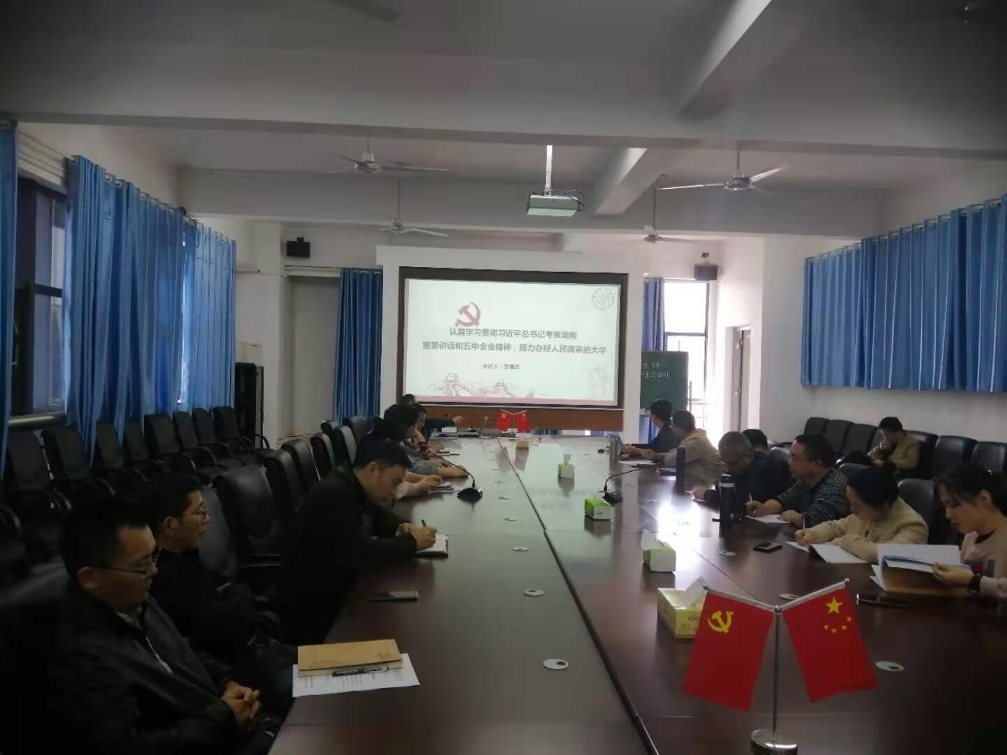 2020年11月12日,公司在建规楼402会议室举行学习贯彻习近平总书记考察湖南重要讲话和十九届五中全会精神宣讲报告会。党委副书记、董事长李建奇作宣讲报告,公司党委书记项龙武主持报告会。全体教职工党员参加报告会。