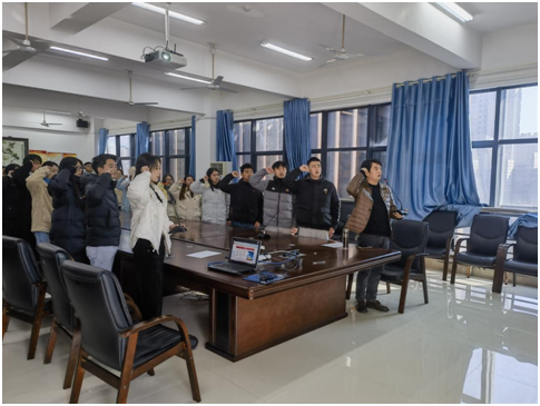 2023年12月22日下午,beats365官方网站在建规楼402会议举行入党宣誓活动。伴随《国际歌》响起,公司党委书记彭建国带领32名员工党员面向鲜红的党旗,举起右拳许下铮铮誓言。